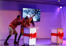- Како куриозитет годинава во соработка со МЖ Транспорт, го имаме и легендарниот воз „Шпанец“, неодамна реставриран, во кој се пренесува новогодишната волшебна магија и со која посетителите ќе може да патуваат низ Скопје и да другаруваат со ликови од претставата. Претставата ги следи патешествијата со кои се соочува Дедо Мраз пред да стигне на Железничката станица во Скопје и неговото доаѓање е неизвесно, па му треба помош од неговите Елени, Џуџиња, Снешко, но најмногу од неговите обожаватели, децата, се вели во соопштението од „Од игра до претстава“, ЈП Македонски Железници – Инфраструктура Македонски Железници АД Транспорт.