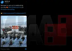 "Ridërgoni tuitin që të bashkoheni në festimin e aleatit tonë Maqedonia e Veriut në Ditën e pavarësisë, është publikuar në profilin zyrtar të NATO-s në Tuiter", tani të kaluar X.