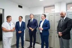 Shkup, 11 shtator 2025 (MIA) - Mjekët do të kenë kushte më të mira për punë, ndërsa pacientët do të marrin një nga spitalet më bashkëkohore në vend. Me investim prej 12 milionë euro po rikonstruktohet plotësisht spitali, theksoi zëvendëskryeministri, Aleksandar Nikolloski, gjatë vizitës së sotme në Spitalin ushtarak së bashku me kryeministrin Hristijan Mickoski dhe ministrin e Shëndetësisë, Azir Aliu.