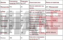 Një gjerman mesatar konsumon sasi të ngjashme të energjisë elektrike sa një maqedonas (~515 kundrejt 453 kWh), me atë që gazi i konsumuar atje për kokë banori është mbresëlënës dhe më i larti në Evropë (102 metra kub gaz në muaj për kokë banori). Francezët janë më të rehatshmit në harxhimin e energjisë elektrike. Mesatarisht, në dhjetorin e ftohtë të vitit të kaluar ata kanë shpenzuar 600 kWh për kokë banori. Arsyeja është e thjeshtë: shumica dërrmuese e amvisërive franceze ngrohen nga energjia elektrike e prodhuar nga termocentralet bërthamore. Në Ballkan, komoditetin e tillë për shkak të energjisë bërthamore e kanë bullgarët.