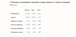 Sipas të dhënave të Entit Shtetëror të Statistikës në vitin 2024, në zonat urbane kanë lindur 9,694 fëmijë, që është 60.4 për qind e numrit të përgjithshëm të lindjeve të gjalla, ndërsa kanë vdekur 12,826, që është shtim natyror negativ prej 3,132 personash.