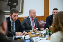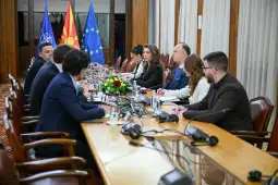 Shkup, 31 mars 2026 (MIA) - Kryetari i Kuvendit, Afrim Gashi, u takua me udhëheqësinë e Zyrës Rajonale të Bashkëpunimit Rinor (RYCO). Delegacioni përbëhej nga sekretari i përgjithshëm i RYCO-së, Vlladimir Obradoviq; zëvendëssekretari i përgjithshëm, Kreshnik Lloka; këshilltari special, Feras Keiralah dhe udhëheqësi i Zyrës Lokale të RYCO-së në Republikën e Maqedonisë së Veriut, Vlladimir Gjorgjevski. Në takim mori pjesë edhe zëvendëskryetarja e Klubit për Çështje dhe Politika Rinore, deputetja Feride Haxhiu.