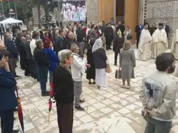Believers have also gathered outside the church, where two large video screens have been set up. The ceremony is also being filmed using drone footage.