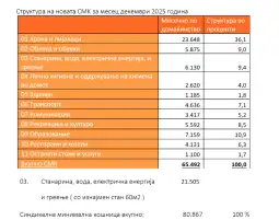 - The minimal consumer basket in December 2025 stands at Mden 65,492 (EUR 1,064), up by Mden 319 over the one in November, when it stood at Mden 65,173 (EUR 1,059), said the Federation of Trade Unions of Macedonia (SSM) on Saturday.