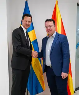 Skopje, 29 September 2025 (MIA) - Deputy PM and Transport Minister Aleksandar Nikoloski met Monday with new Ambassador of Sweden, Ola Sohlström, and briefed him on the Government's capital projects and the country's involvement in regional infrastructure projects.