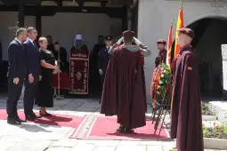 President Gordana Siljanovska-Davkova, a government delegation led by Prime Minister Hristijan Mickoski, a delegation from Parliament, representatives of the diplomatic corps, political parties, associations and others laid flowers at Delchev’s tomb in St. Spas.
