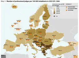 However, there are also countries with over 40 judges per 100,000 inhabitants. According to the CEPEJ, these inequalities can be explained, at least to some extent, by the diversity of European judicial organisations and legal systems, which are the product of long historical processes. Thus, the low number of professional judges per capita in Great Britain - England and Wales, Great Britain - Northern Ireland and Great Britain - Scotland can be explained by the very high proportion of cases falling within the jurisdiction of magistrates' courts composed of lay judges. The map shows all the countries that have both part-time professional judges and lay judges in some countries.