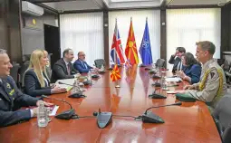 Skopje, 14 May 2025 (MIA) - Minister of Defence Vlado Misajlovski met Wednesday with the new UK Special Envoy for the Western Balkans, Dame Karen Pierce, who was accompanied by Ambassador Matthew Lawson and Defence Attaché, Lieutenant Colonel Edward John Green.
