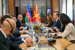 Skopje, 21 July 2025 (MIA) - Parliament Speaker Afrim Gashi met Monday with Azerbaijan's Minister of Economy, Mikayil Jabbarov, discussing possibilities to promote cooperation between the two countries. Deputy Secretary General of the Parliament, Nikola Gjoshevski, also attended the meeting, the Parliament said in a press release.