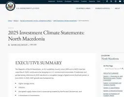 “However, the country’s overall regulatory environment remains complex, and frequent regulatory and legislative changes, coupled with inconsistent interpretation of the rules, create an unpredictable business environment conducive to corruption. The government generally enforces laws, but there are numerous reports that some officials remain engaged in corrupt activities. Transparency International ranked North Macedonia 88th out of 180 countries in its Corruption Perceptions Index in 2024, with a score of 40 out of 100. Apart from several announcements that the government is working to promote new investment, limited efforts were seen in 2024 to attract new investment, focusing instead on energy efficiency improvements, financial assistance for vulnerable households, and softening inflationary pressures. However, the government did court foreign companies and investors for public projects in transportation and energy infrastructure,” says the document.