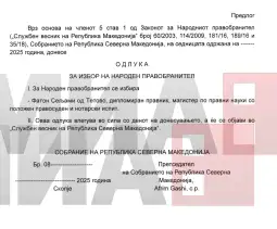 Shkup, 23 janar 2026 (MIA) - Kuvendi sot në kuadër të seancës së 65-të e zgjodhi Faton Selamin nga Tetova për avokat të ri të popullit.
