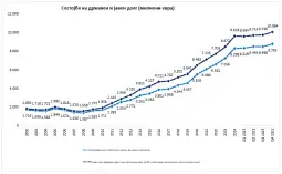 According to the Ministry of Finance, public debt at the end of 2025 stood at EUR 10,064.1 million, with external public debt at EUR 4,493.9 million and internal public debt at EUR 4,570.2 million. The state debt as until the end of 2025 stood at EUR 538,253.1 million, i.e. 51.8%, and recorded a decrease compared to the previous year by 1.2 percentage points.