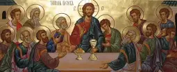 „Тајна вечера“ – востановување на Светата евхаристија Оваа е најзначајната вечера Господова – Последната вечера со апостолате – Тајната вечера (Матеј 26,26-30; Марко 14,22-25; Лука 22,15-20; 1. Кор. 11,23-25). Пасхалната вечера, го поврзувале јадењето на Пасхалното јагне со јадењето на телото Христово. Се поистоветува Христовото тело со закланото Пасхално јагне. Ова е слика како Господ Исус Христос Го зема врз себе обичното човечко тело, Го благословува и го издигнува до спасението, и допушта тоа Негово тело да биде прекршено и дадено на сето човештво за спасение, преку Светата евхаристија. Виното на Тајната вечера ја претставува Христовата пролиена крв, која е „крв на Новиот завет“, односно, преку која се создава Новиот завет, новиот договор (тестамент) меѓу Бога и човекот.