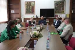 Куманово, 26 мај 2025 (МИА) - Кумановскиот градоначалник Максим Димитриевски денеска организираше прием на претставниците на фудбалскиот клуб „Башкими“ по повод враќањето на екипата во првата македонска фудбалска лига.