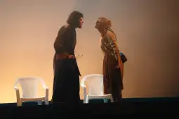 - Да, се чувствува распад и кај семејството и во средината и тоа е нешто што на некој начин и создава контраст на таа успешна жена која се враќа од некаде кога доаѓа во комплетен судир со средината што не може да ја препознае, и од друга страна ја има таа рефлексија на да речеме, оваа балканска средина со сите работи што ни се сллучуваат. Тоа во суштина е трагичен текст, така и завршува, трагедија зад сите жанровски маски.