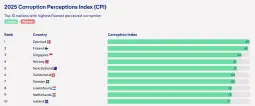 Индексот за 2025 година покажува драматично намалување на бројот на земји што постигнале повеќе од 80 поени - нивото што укажува дека јавната администрација на една земја е чиста. Пред десет години имаше 12 такви земји, а оваа година само пет.