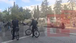 Секако, со оглед на тоа што делот околу Акропол е пешачка зона и се забранети автомобилите, постојат и полицајци на велосипеди.