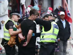 Полицијата соопшти дека вчера уапсила четири лица во врска со операцијата во која слика од Трамп и американскиот сексуален престапник Џефри Епштајн беше проектирана на кулата од замокот Виндзор, како потсетник за односот на претседателот со осрамотениот финансиер.
