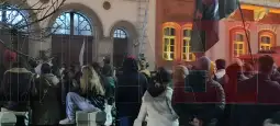 Инаку, протест има и пред зградата на Ректоратот на Универзитетот во Нови Сад во знак на поддршка на Универзитетот во Белград.