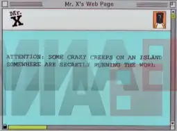 - Во епизоода од 2000. се посочува напис на „Г-н Икс“ којшто вели: „Внимание: Некои луди луѓе на еден остров тајно го водат светот“.