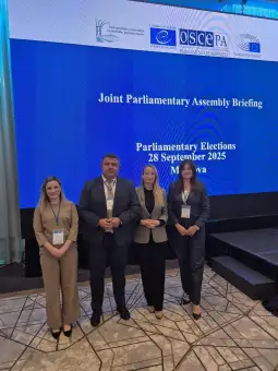 Скопје, 29 септември 2025 (МИА) - Делегацијата на Република Северна Македонија во Парламентарното собрание на ОБСЕ (ПС на ОБСЕ), предводена од Моника Зајкова, со членовите Никола Мицевски и Мимоза Муса, како и шефицата на Делегацијата во Парламентарното собрание на Советот на Европа (ПС на СЕ) Марија Петрушевска, учествува во Меѓународната мисија за набљудување на парламентарните избори во Молдавија, што се одржуваат на 28 септември 2025 година.