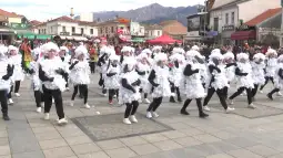 -Ние сме околу 70 учесници и претставуваме весела фарма. Имаме јагниња, млекарки, чувари, па дури и лош волк од кого бегаме. На маската работевме две недели, вели ученичката Анастасија Здравеска од ОУ „Добре Јованоски“ од Прилеп.