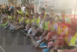 Брисел, 12 мај 2025 (МИА) – Српските студенти кои на 25 април од Нови Сад тргнаа во штафетен ултрамаратон низ Европа кон Брисел вечерва беа пречекани од повеќе стотици граѓани на бриселскиот плоштад „Шуман“, каде се наоѓаат и седиштата на Советот на ЕУ и Европската комисија.