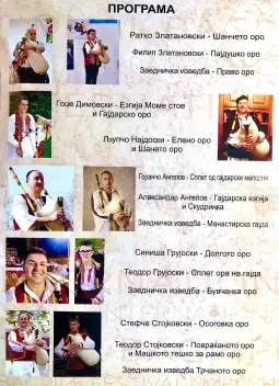 -Фестивалот е ревијален карактер, влезот е слободен и бесплатен. На првото издание на фестивалот ќе настапат: Ратко и Филип Златановски, Горанчо и Александар Ангелов, Синиша и Теодор Грујоски, Стефче Стојковски и Теодор Стојановски - Катин, Гоце Димовски и Љупчо Најдоски, информира организаторот на фестивалот. хс/дма/