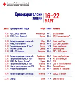 Посочија дека од 16 до 22 март во целата држава се организираат крводарителски акции.