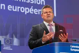 Брисел, 28 јули 2025 (МИА) - Единствена царинска стапка од 15 проценти, 750 милијарди долари во стратешки енергетски набавки од САД и дополнителни 600 милијарди долари инвестиции во американската економија, се клучните столбови на трговскиот договор постигнат вчера меѓу ЕУ и Соединетите Држави, изјави денеска на прес-конференција еврокомесарот за трговија Марош Шефчович.