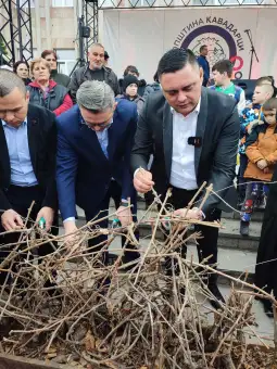 Агелер, Трипуновски и Љутков закроија винова лоза и наздравија со вино во Кавадарци
