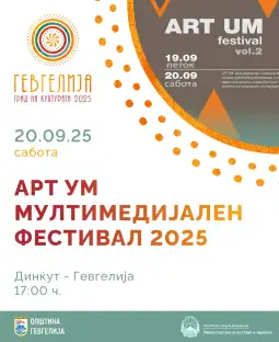 Гевгелија, 19 септември 2025 (МИА) - Во Гевгелија денеска и утре се одржува второто издание на „АРТ УМ“ Мултимедијален фестивал, во организација на ЗГ „АРТ УМ 023“- Гевгелија. Фестивалот е дел од програмата „Гевгелија град на култура за 2025 година“ и ќе понуди уникатни едукативни содржини, креативни работилници, изложби и спектакуларни настапи на светски познати диџеи и уметници.