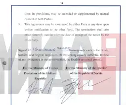 Договорот меѓу Министерството за заштита на граѓаните на Грција и Министерството за внатрешни работи на Србија предвидува секоја од страните да испрати до двајца полицајци за период од најмногу 30 дена.