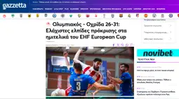 - „Олимпијакос – Охрид 26-31: Пораз во Илиуполи и оди во Северна Македонија за пресврт што ќе го испрати во полуфиналето на ЕХФ Европскиот куп“; „Пораз на Олимпијакос од Охрид во Илиуполи“; „Олимпијакос поразен од Охрид – тешка мисија пласманот во „четворката“ на ЕХФ Европскиот Куп“; „Олимпијакос – Охрид 26-31: Минимални шанси за полуфинале во ЕХФ Европскиот Куп“; „Олимпијакос – Охрид 26-31: сè ќе се решава во реваншот“, се дел од насловите во грчките спортистки медиуми за вчерашниот натпревар, јави дописничката на МИА од Атина.