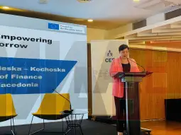 Како што вечерва соопшти Министерството за финансии, во обраќањето, министерката нагласила дека институционалниот развој не е дополнување на реформите, туку нивна основа.