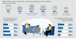 За младите на возраст меѓу 15 и 24 години, најкористениот извор за овој тип содржина се платформите на социјалните медиуми (65%), додека нешто под половина (49%) тоа го прават од традиционланите медиуми.
