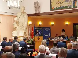 Ректорката на Универзитетот „Св.Кирил и Методиј“ Билјана Ангелова, во своето обраќање на настанот подвлече дека Институт за безбедност, одбрана и мир има континуирана посветеност на истражување и образование во одбраната. Основан е со цел да се развијат нови теоретски и практични концепти, за подобрување на националната и регионалната безбедност.