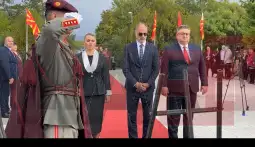 Куманово, 11 октомври 2025 (МИА) - Куманово го чествува празникот 11 Октомври – Ден на народното востание и 84 години од денот кога беше означен почетокот на народно-ослободителната војна и заокружувањето на раѓањето на македонската држава. Бројни делегации, предводени од Здужението на борците Куманово, градоначалникот на општина Куманово, делегација од Владата, од Собранието, од кабинетот на претседателката, Армијата, МВР, државни институции, амбасадори и претставници од амбасади, установи, политички партии, здруженија на граѓани, денеска положија цвеќе на Спомен костурницата во Куманово.