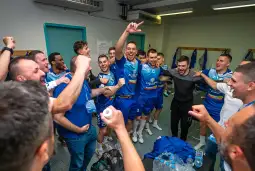 Сепак избраниците на Лазаров успеаја да стигнат до победа во пресрет на реваншот следната недела во Скопје, а тренерот посочи дека се што било договоривме го исполниле 90 отсто и сега е време да се слави победата, славење кое започна уште од соблекувалната во салата веднаш по натпреварот.