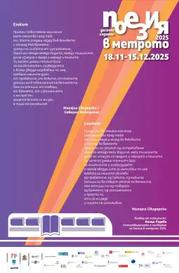 Софија, 18 ноември 2025 (МИА) - Десеттото издание на проектот „Европска поезија во вагоните и станиците на Софиското метро“ ќе се реализира од денеска до 15 декември, кога во вагоните и станиците на метрото во Софија ќе се чита европска поезија, а Македонскиот културно-информативен центар втор пат се вклучува меѓу организаторите.