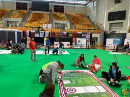 Учениците се од СТЕМ Академијата, од каде што за МИА велат дека нашите тимови учествуваат во најтешката дисциплина петобој арена каде што самонаведувачки робот во период од четири минути треба да изврши задачи.