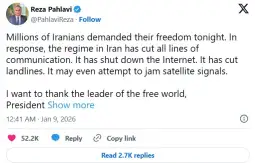 Во објава на социјалната мрежа X, Пахлави рече дека „милиони Иранци ја бараа својата слобода вечерва“, опишувајќи ги демонстрантите како негови „храбри сонародници“ и му се заблагодари на Трамп.