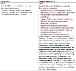Има промени и во однос на тоа кога предвреме ќе му престане мандатот на обвинителот. Меѓу другото, на обвинителот по автоматизам ќе му престане мандатот ако е правосилно осуден на казна затвор (досега беше потребно да биде осуден на најмалку шест месеци затвор) или ако е осуден за кривично дело против службената должност, независно од висината на казната.