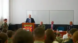 Скопје, 1 октомври 2025 (МИА) - Министерот за одбрана Владо Мисајловски и министерот за одбрана на Босна и Херцеговина, Зукан Хелез, кој престојува во официјална посета на земјава, присуствуваа и се обратија на првиот академски час на Воената академија, со што и официјално почна новата учебна година за идните офицери.