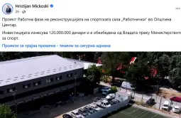 - Реконструкцијата на спортската сала „Работнички“ во Општина Центар се одвива во работна фаза, при што објектот добива целосно нов лик и функционалност согласно современите спортски и технички стандарди, наведува премиерот Христијан Мицкоски, во објава на Фејсбук.