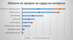 Во однос на судирот на интереси, најголем број пријави се однесуваат на органите на државната власт, локалната власт, образованието, здравството, правосудството...