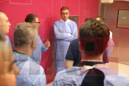 - За неколку месеци отсега треба да бидат пуштени уште четири сали така што го закружуваме процесот од 10 современи модерни операциони сали. Од почетокот на летото се надевам дека ќе бидеме во можност да видиме уште еден завршен проект во болницата „8 Септември“ каде исто така ќе имаме модерни сали и со тоа ќе бидеме практично држава број еден во регионот кога станува збор за ваков тип на операциони сали. Во здравството има многу работи што треба да се прават, но потребни се и фундаментални промени како во менталитетот на политичарите, така и во менталитетот на вработените. Здравството е еден од врвните проритети на Владата, рече Мицкоски.