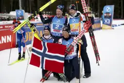 Ленцерхајде, 22 февруари 2025 (МИА) - Норвешка победи во машката штафета на Светското првенство во биатлон во Ленцерхајде.