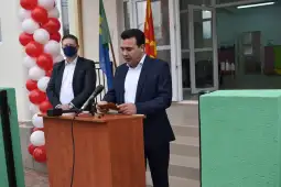 - Премиерот Зоран Заев заедно со министерката за труд и социјална политика, Јагода Шахпаска и градоначалникот на Босилово, Зоран Зимаков, денеска, во општинскиот центар, ја отворија првата детс