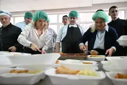 Скопје, 4 јануари 2-26 (МИА) - Градоначалникот на Град Скопје, Орце Ѓорѓиевски, заедно со сопругата Мартина и сопругата на премиерот, Рози Мицкоска, во пресрет на најубавиот празник, учествуваа во хуманитарната активност за приготување на повеќе од 250 топли оброци, наменети за најранливите категории сограѓани и поделени во пунктот за бездомници на Црвениот крст.